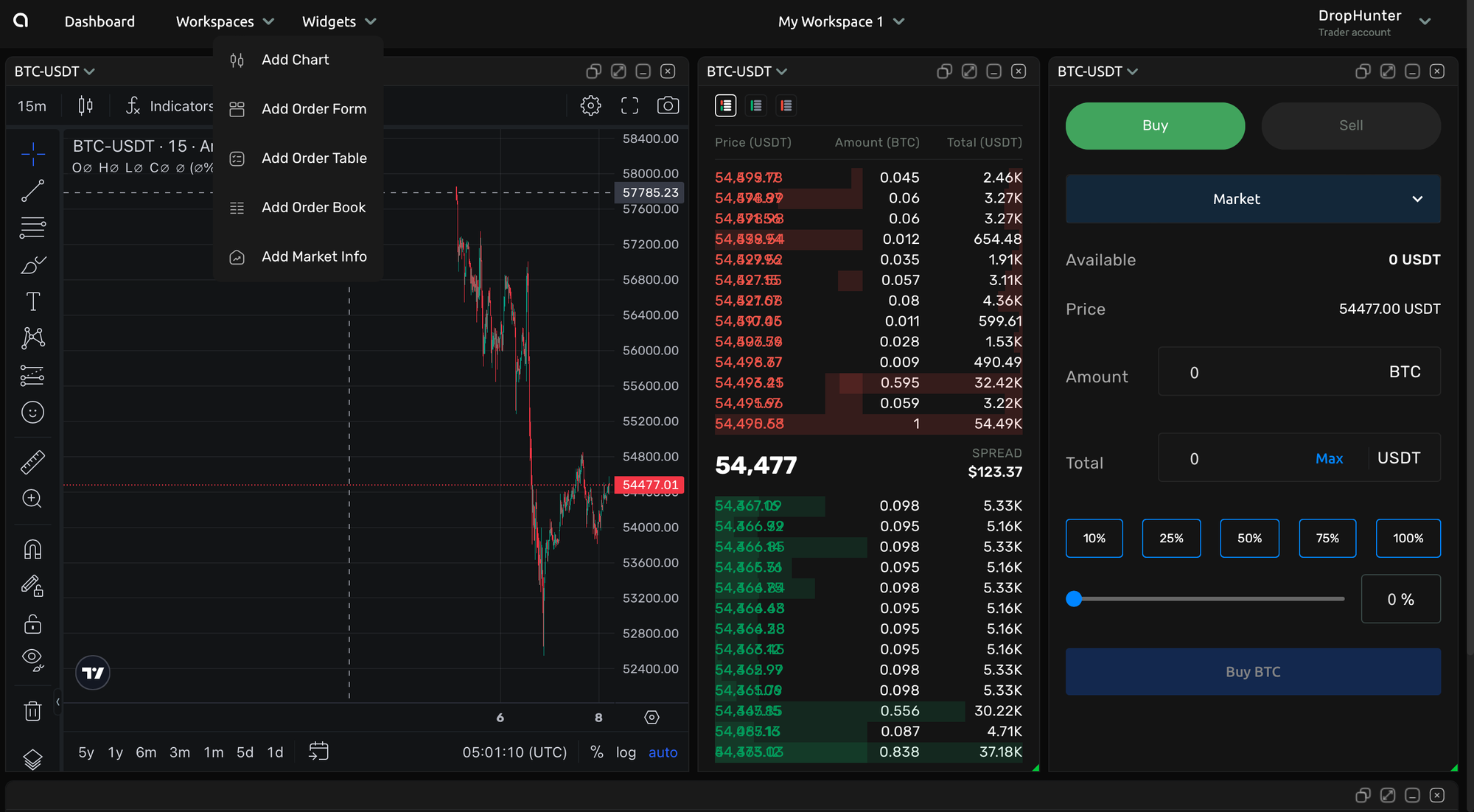 Workspace Customization with WidgetsUnlike most trading platforms that are limited by a fixed interface design, Amabit offers complete customization of the trading interface using widgets. Traders can tailor the interface to their individual needs by adding, moving, and adjusting widgets to display the information and functionality they require.Benefits: